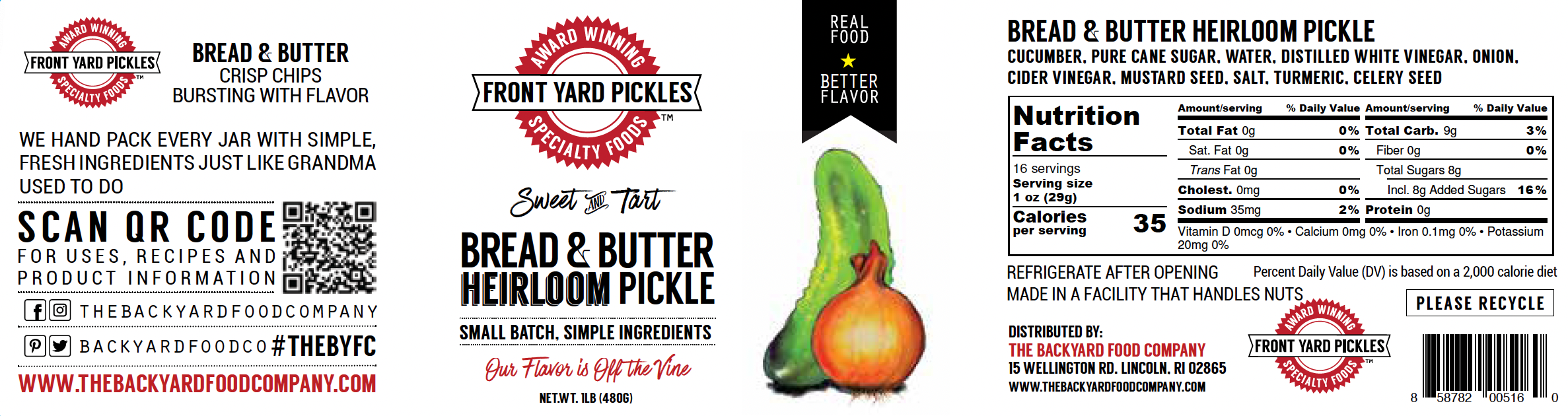 The Bread & Butter is an heirloom pickle from the great depression. Made with simple ingredients for a fresh, homemade flavor.